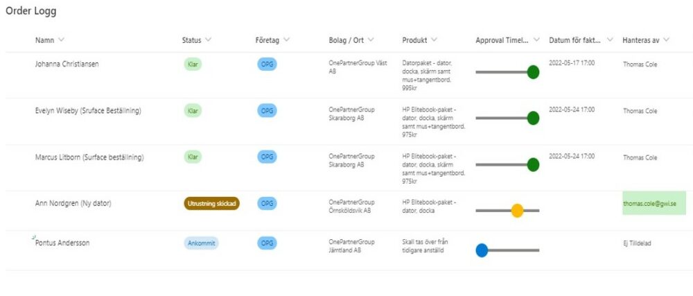 Ledningen på FS Service kan enkelt hålla koll på allt via en tydlig Sharepoint med listor för både bokningar och certifikat